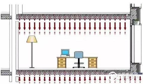 人和环境的热交换方式以辐射形式所占比例最大,并且约一半的热量从头部散发。天棚采暖系统以顶部辐射的形式进行采暖和制冷,比普通方式更健康、舒适、有效。