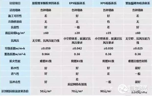 不同外墙保温系统对比
