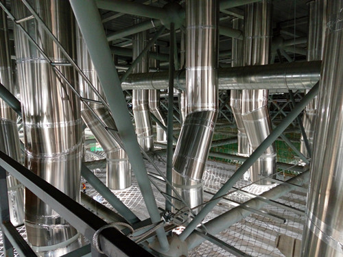 小的管道是标准的330DS,管道直径530mm,而大的管道是08年奥运会时特别定制的(第一代扩光器的雏形),管道直径830mm,用在这个大跨度挑高空间再合适不过了。