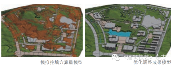 通过建立场地参数化模型,实现场地可视化,利用场地参数化模型和设计初设模型进行重叠,根据山地建筑特点,进行建筑布局优化和标高调整优化,同时进行土方挖填方量平衡计算,定性定量分析验证,经过三轮优化后,模型挖填方量差与原方格网挖填方量差的比例分别为177.82%、126.78%、105.95%,根据土方平衡分析及优化成果分析,优化设计后的总平面布置方案已趋于合理,共减少土方工程总量29.33万m3,由此提升了管理效益和经济效益。