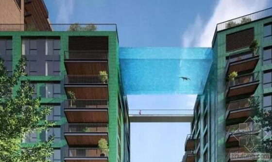 位于第14层的全透明玻璃泳池