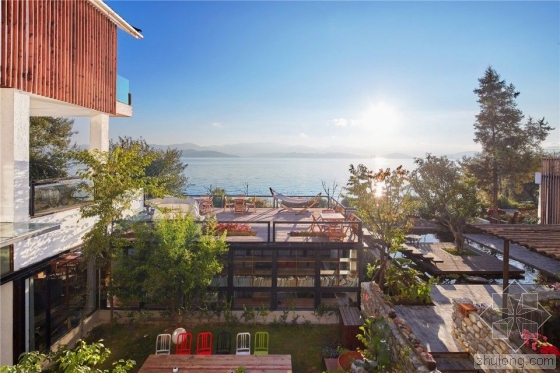 然,他们也考虑到了环保的问题,为了不向洱海排一滴污水,他们花费数十万设置了10吨级的中水处理系统,污水处理后可作为庭院景观用水,并且在酒店主入口设置了中水系统的展示窗口,传递环保设计理念。此外,设计团队也在酒店中配置了太阳能热水系统,充分利用当地气候条件。
