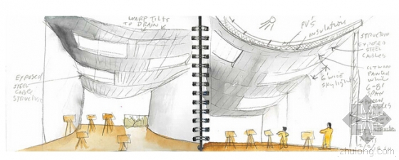 斯蒂芬•霍尔建筑师事务所受富兰克林与马歇尔学院(美国宾夕法尼亚州兰开斯特市)委托,设计一座新的视觉艺术教学楼及方院,以促进校园未来的艺术发展。该方案的设计灵感来自环绕建筑的树丛,霍尔称其为“公园中的展馆”,如同树丛中的风筝。