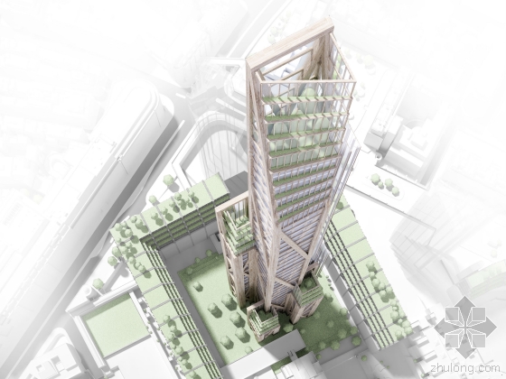 木结构高层建筑的研究还包括打造新型建筑,而不是简单地照搬传统的钢铁水泥建筑的设计理念。十九和二十世纪以来,钢铁、玻璃和混凝土的应用对建筑业产生了革命性的影响,出现了如约瑟夫·帕克斯顿的水晶宫、瓦尔特·本雅明笔下的巴黎拱廊街这样的建筑新形式。同样的,木建筑的创新也将给 二十一世纪的城市带来崭新的体验。方案中的建筑将全部使用来自于“种植林”的木材。目前,世界各地人工种植林面积不断扩大,仅加拿大在未来七十年内就将生产超过150亿立方的木材,足以满足10亿人的住房需求,而不会出现环保人士所担心的威胁天然森林资源的情况。