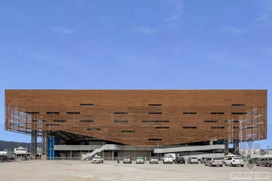 该手球场是本地建筑事务所Lopes, Santos & Ferreira Gomes与英国公司及设计机构合作的拥有12000座椅的竞技场馆。整体盒型的运动馆由“雨幕”外墙包裹,“雨幕”由水平窄木条构成,并且有若干类似邮箱投递口状的立面开口。