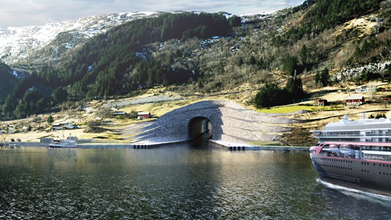 高37米,宽36米长的船,将可以通过“斯塔德船隧道”。这条隧道连通Kjodepollen 峡湾和Moldefjorden峡湾。斯诺赫塔建筑事务所为隧道口设计了石头拱门作为装饰。