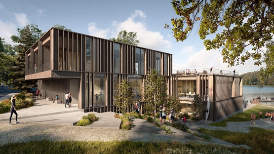 据报道,丹麦的AART建筑事务所被挑选去设计国家赛艇运动场。它在哥本哈根郊外的巴格斯瓦尔德湖(Bagsvard Lake),设计了一个分层的,用木材做外表面的船库。