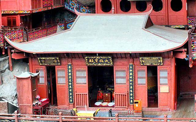 甘露寺藏在岩穴之中,即使是刮风下雨,建筑都能得到很好的保护,因此屋顶无需用片瓦。上图大雄宝殿内供奉着佛祖释迦牟尼,这里也出现了甘露寺的一大奇观,那就是佛祖前面还供奉着观音菩萨。游客只要在佛祖和观音前上一柱香,就能得到佛祖和观音的双重保佑。