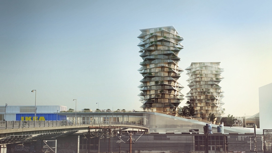 比贾克-英格尔斯集团(BIG)最近公布了两幢高层住宅楼的效果图。这两幢高层住宅楼有大钉似的表面,将俯瞰哥本哈根的韦斯特伯区的新宜家(IKEA)商店和酒店。