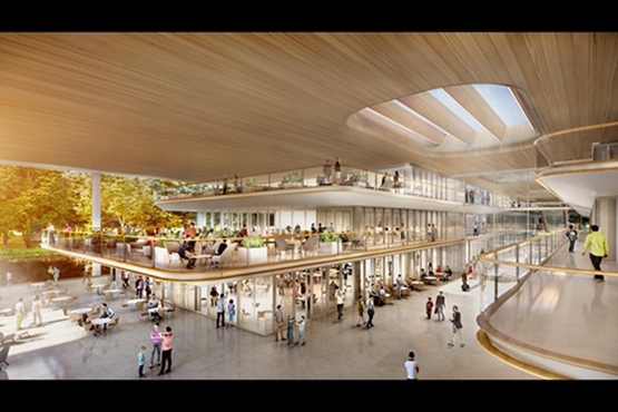 环保设计,员工健康是中心主题,这幢建筑的活动地板可以改善空气质量,还有广泛的循环利用设施和1.3公里的林中跑道。