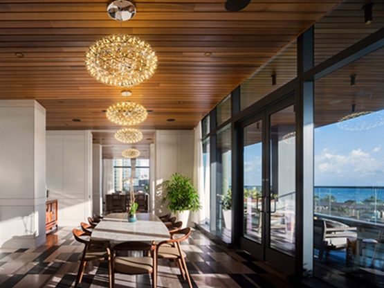 这个玻璃底的游泳池伸出檀香山的“阿纳哈大厦”(Anaha)的第七楼。这个项目由芝加哥的所罗门-科德威尔-比恩斯工作室(Solomon Cordwell Buenz)与当地企业本杰明-吴建筑事务所(Benjamin Woo Architects)合作设计。。