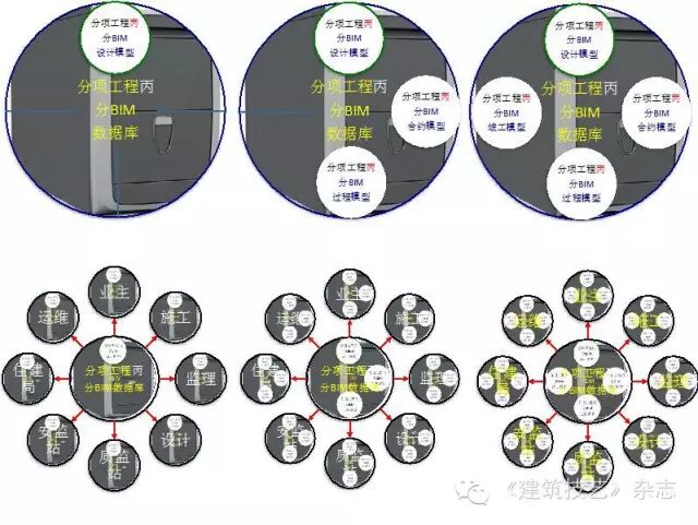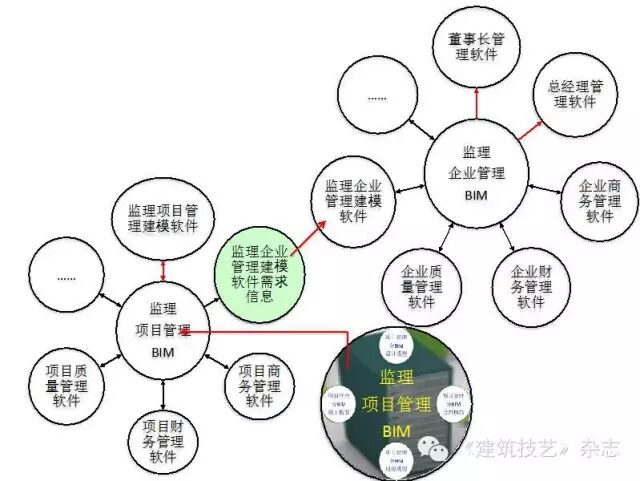 要做到“逐步建立覆盖BIM创建、修改、交换、应用和交付全过程的企业BIM应用标准流程”。目前,国内外实施BIM的方式基本上都采用“软件开发商BIM”,不同软件开发商都有自己标榜的“全生命期BIM应用解决方案”,而中国工程项目的全生命期任务是任何软件开发商自成系统的BIM解决方案都无法完全满足的。因此,《指导意见》希望有关单位和企业要根据实际需求制定BIM应用发展规划,尤其注重根据实际需求选择适合自己的BIM应用方式,以最小的投入实现高附加值的BIM应用,尽量满足:1)符合传统工作管理流程及人员工作习惯;2)变集中式BIM建模为分布式(任务驱动)BIM建模;3)细分信息,使不同阶段的信息交换在同专业人员之间进行;4)企业管理系统BIM数据从不同阶段BIM数据中提取;5)以缺什么补什么的方式,在传统工作流程上增加BIM优势(而不是革命),实现BIM普及应用;6)改造已有的国产软件为BIM设计(交底)应用(含建模)软件,国外“BIM建模软件”也可按中国“工程建设法律法规、技术标准”及BIM标准改造,实现软件数据互用;7)深刻认识BIM的信息共享、协同工作和BIM信息为管理决策服务的本质,确定管理节点模型(图4,5)。