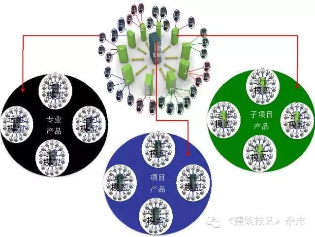 (1)在多数情况下,信息模型是以层的形式来表示。层化的信息模型包括一个用来支持不同领域信息的通用框架。因此,我们将建筑工程认为是多产品组合物,并深入研究“BIM数据管理平台”(图6)。
