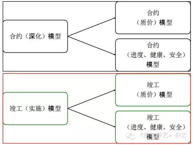 (5)施工过程管理。建议将施工合约及竣工分BIM模型分别分为质价和进度(含安全、健康)两个模型(图24)。“成本管理与控制”由质价模型控制,施工进度、人力、材料、设备、质量、安全、场地布置等信息分配在两个模型中便于分类实施动态管理,施工过程实现可视化模拟和施工方案的不断优化。此外,质价模型信息服务于质监站管理,而进度(含安全、健康)模型信息则对应安监站管理。