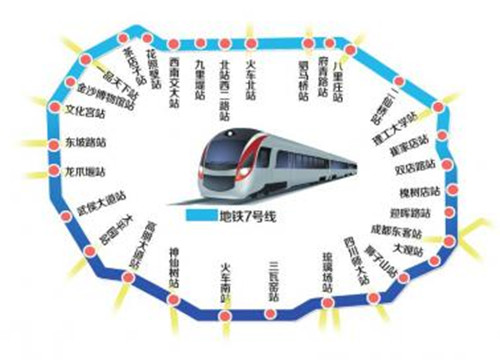 成都地铁7号线绕中环运行全程38公里,沿途停靠31个站点。
