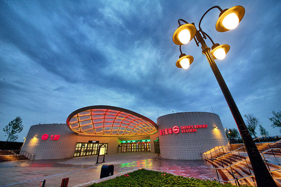 车站精美梦幻的内饰不仅能带来足够的回头率,其背后还兼具实用的功能,保证“好看又好用”。据悉,迪士尼站内的导向标识采用“非标”模式,较其他站点的导向标识字体更大,同时还装饰以五种颜色的鲜艳色带,更为醒目,方便乘客辨识。此外,车站建筑的外立面采用门钉等中国传统的城门与城墙元素。由于站体南北长度远远大于东西长度,整体呈现“展翅翼龙”形象,更为突出中国元素。
