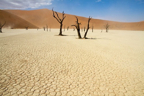 纳米比亚诺克卢福公园(Naukluft Park)中的这片高岭土地,更像是超现实主义画家笔下的作品而非真实存在的景观。这里曾经被洪水淹没,当洪水退去后就只剩下这片干裂的高原。顽强的骆驼荆棘也逐渐屈服于炎炎烈日之下,但却仍然屹立于这片土地上,仿佛卫兵一般。
