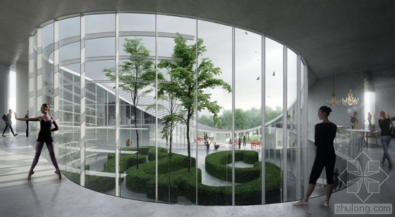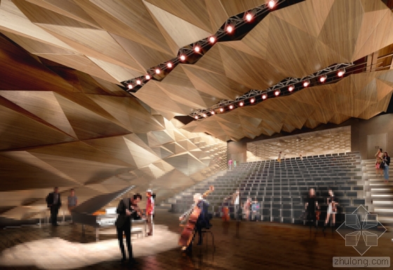 该文化设施立面主要包括了五项功能,音乐活动空间、礼堂、舞蹈剧场、管理空间,和一个地区高级音乐部门。
