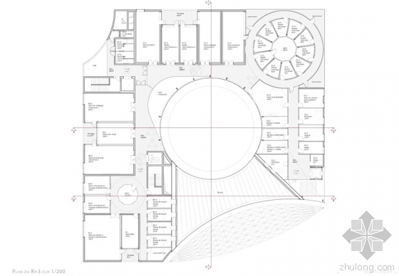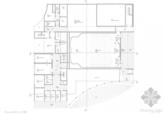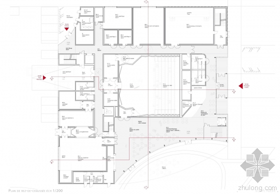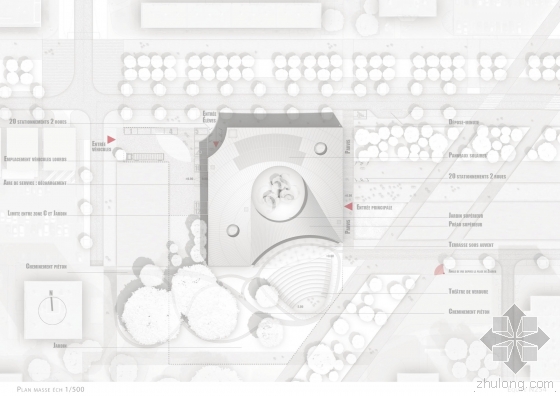 “该空间具有优美的音乐效果,室内为音响效果做了精细的设计。面板的几何形状是根据埃及金字塔形状进行的和声处理。”礼堂的屋顶设计成了公共园林空间。建筑序列和顺序是该提案的另一个主题。里面的空间是彼此重叠的,享有外部公共空间。长长的走廊形成了集会的空间。音乐学院将会创建自己的文化现象,并将它自己融入到雷恩的城市结构中。