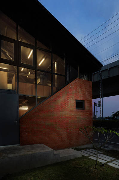 基地所在位置原为农业型聚落,经时代变迁移入局部工业活动而产生许多小型工厂,而近年完工的高速铁路穿越后,使其交织着越来越明显的新与旧、传统与科技、安静与速度等对比性特质,这些特质塑造了独特的地域性格。因此,我们一方面效法台湾传统建筑中构架与承重结合的构造系统(木构造与砖构造),并加以转化为结合现代钢构造与砖构造,一方面也运用这样的结合希望产生独特的建筑形式,借以象征环境的两面特性。