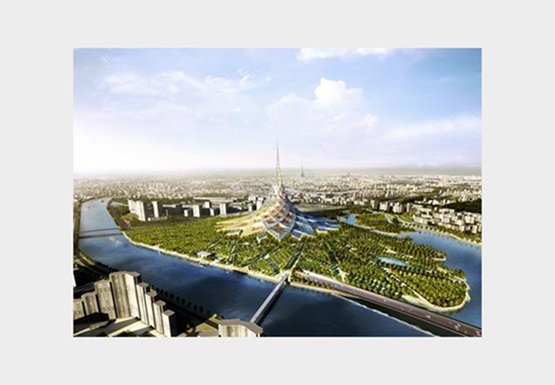 福斯特设计的“水晶岛”项目,位于莫斯科河边,是一个帐篷状的迷你城市,高度为450米。它有世界上最高的建筑之一,并且,在楼层空间方面,它是世界上最大的建筑。