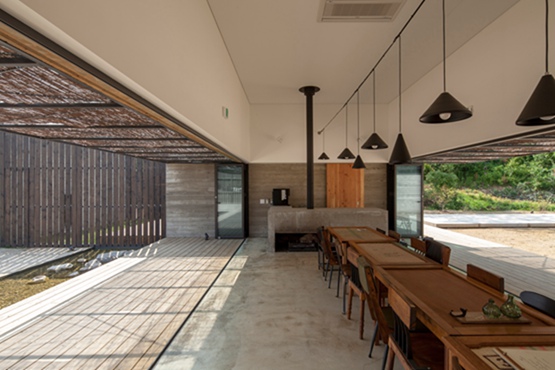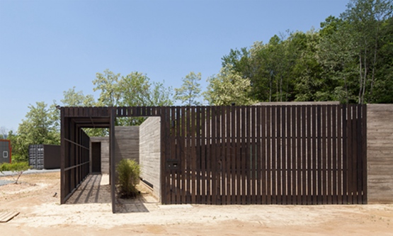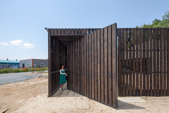 “韩国蒲公英农场”建筑物主要使用两种材料,混凝土被用来建造更封闭的区域,而木栅栏环绕露天场所。