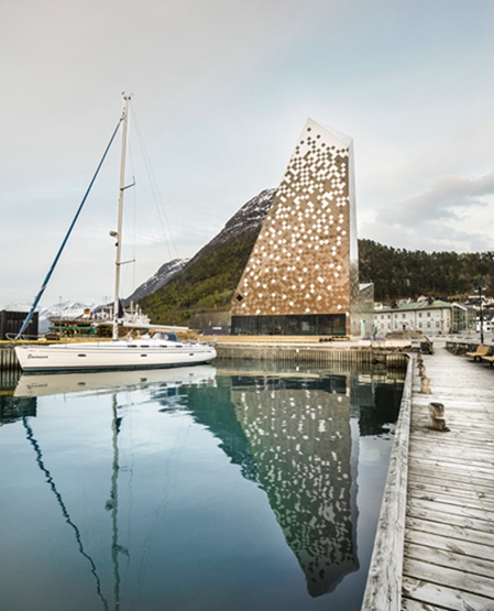 这个命名为“挪威登山中心”(Norwegian Mountaineering Centre)的项目,位于挪威的罗姆斯达伦峡谷(Romsdalen Valley)小镇安达尔斯内斯的一个港口边。