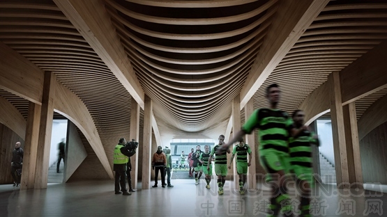 这个体育场将是一个波浪形的、由木材构成的“碗”。它的每个座位的位置,经过计算,将给观众提供最好的视界。
