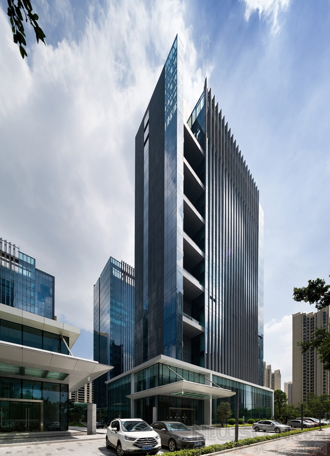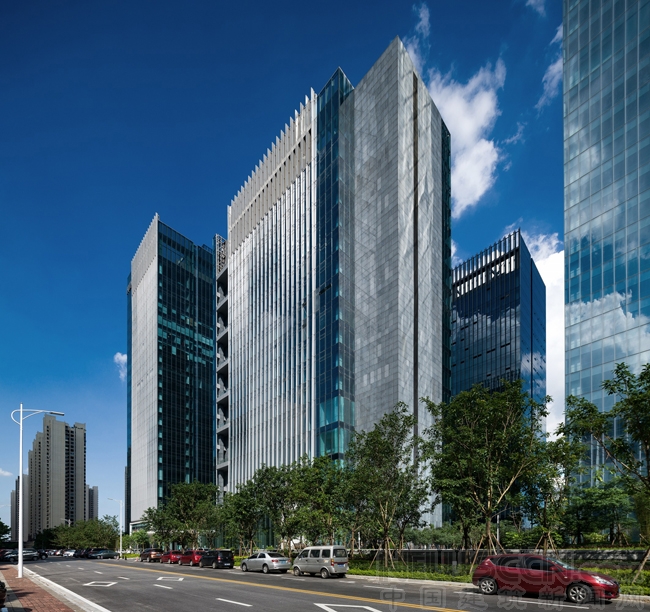 该项目的建筑设计和景观设计以现代建筑语言表现顺德当地文化和中国传统园林。立面的垂直百叶诠释出宝贵的城市文化遗产——著名的顺德丝绸的优雅质感。垂直百叶的深度略有不同,形成柔和、具有现代感且轻微扭曲的立面,同时为综合体建筑打造和谐统一的表现形式。