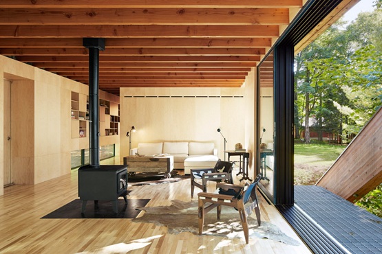 在室内,大面积的枫木胶合板覆盖墙壁和地面。整个建筑仅使用当地的木材,该项目在“安大略2016年度木材设计奖”(Ontario Wood Design Awards )评选中获得一等奖。