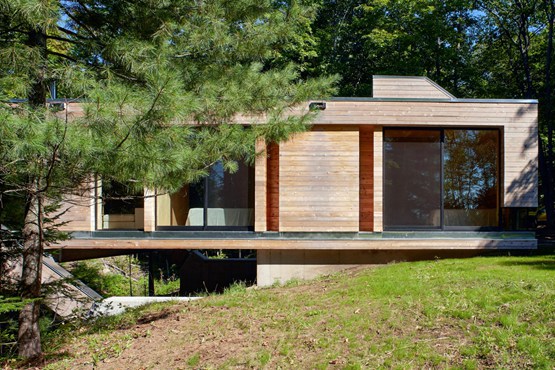 在上部,用染色的雪松板作为墙壁和屋顶。房屋面积2476平方英尺(230平方米)。