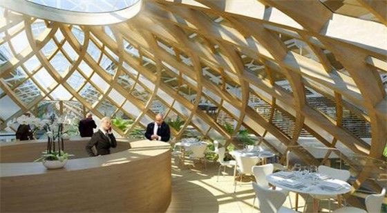 住宅区以三座类似滑雪跳台的景观建筑为中心。建筑上方的垂直花园,郁郁葱葱的绿色景观将曾经的湿地变成了一处花园天堂。